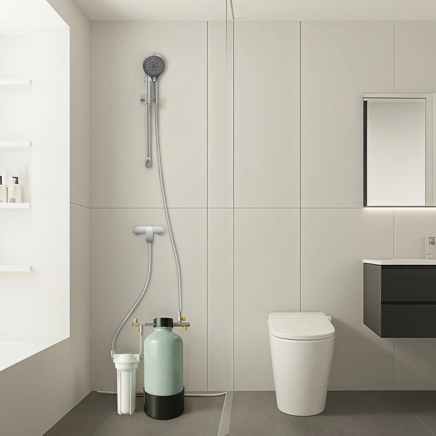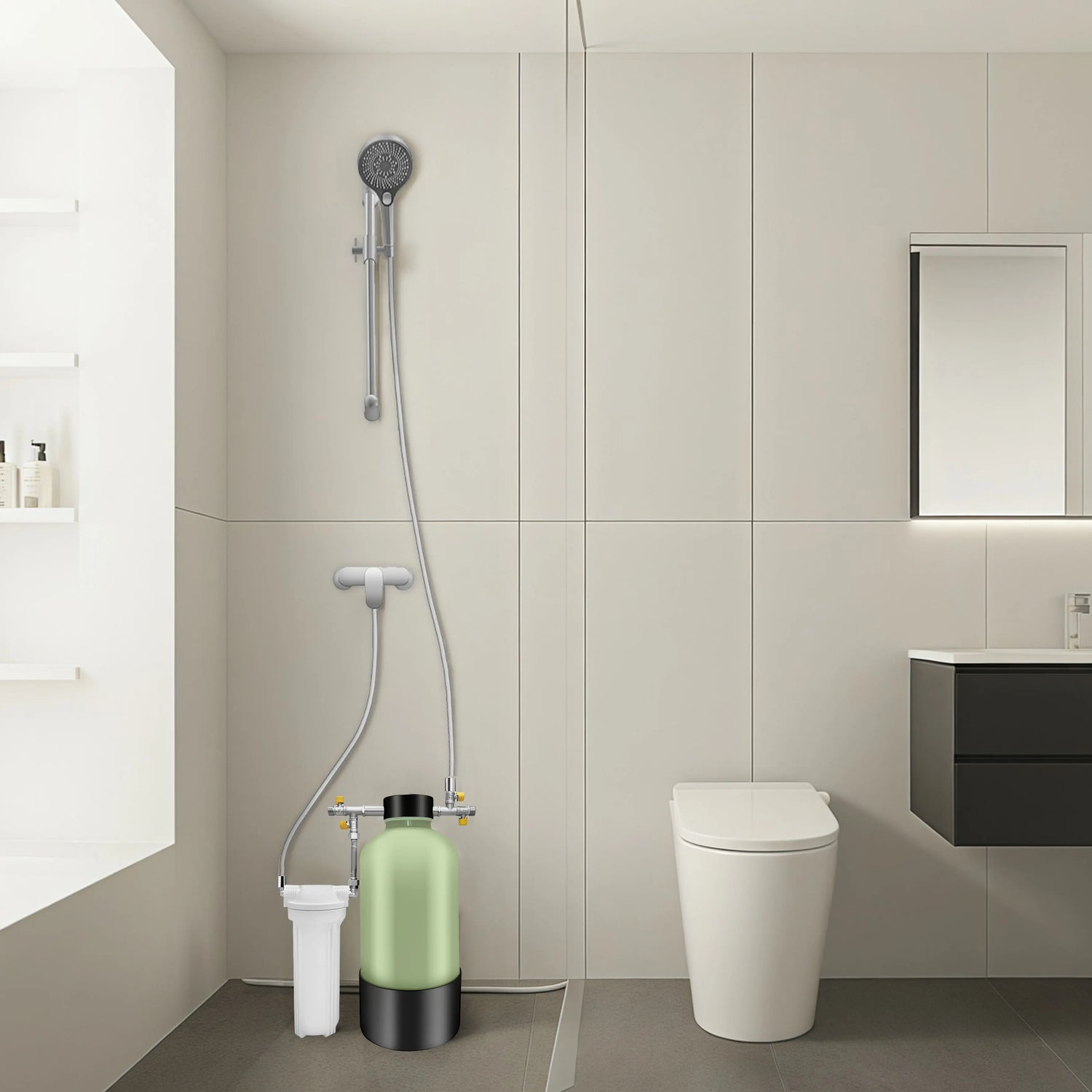 The SoftWaterCare shower water softener system combines advanced ACF filtration with powerful water softening.